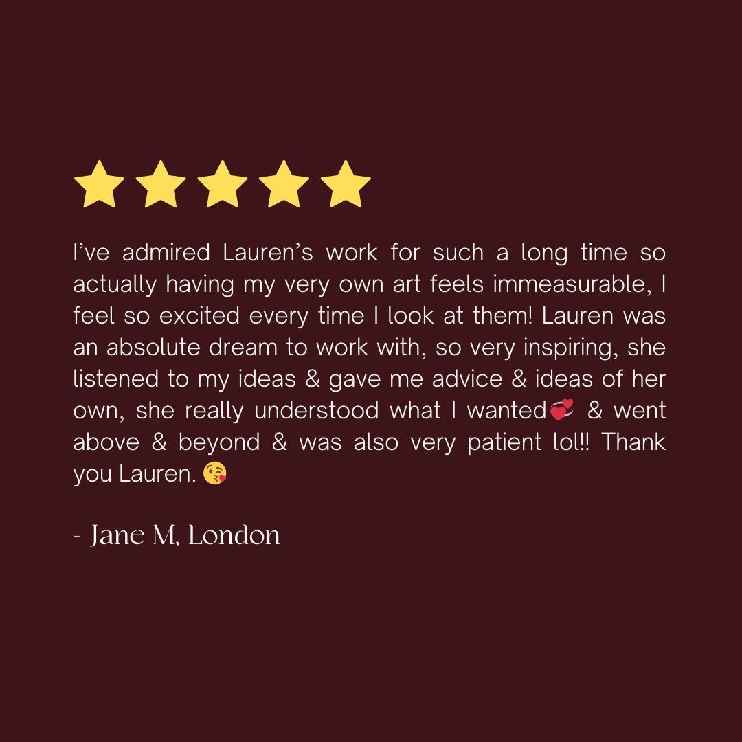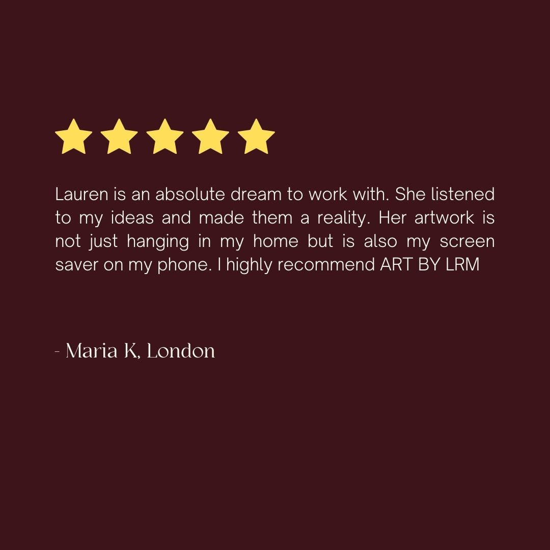 " " Thank you, Lauren, for bringing such sophisticated glamour into my home in Whitstable. I now have five of your pieces on my walls, and each one transforms the space — they don’t just decorate, they create an atmosphere. Every guest who visits comments on them, and I can’t wait to collect more.Freya Pearson, Whitstable Kent